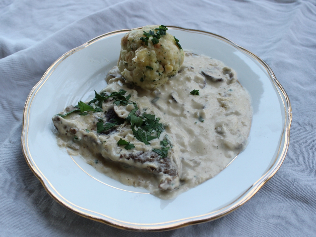 Die butter zum bratsatz geben und die zwiebeln darin daempfen champignons mitdaempfen mit weisswein abloeschen einkochen. Finde was du suchst erstklassig genial. Rahm mit mehl verruehren essig einruehren.