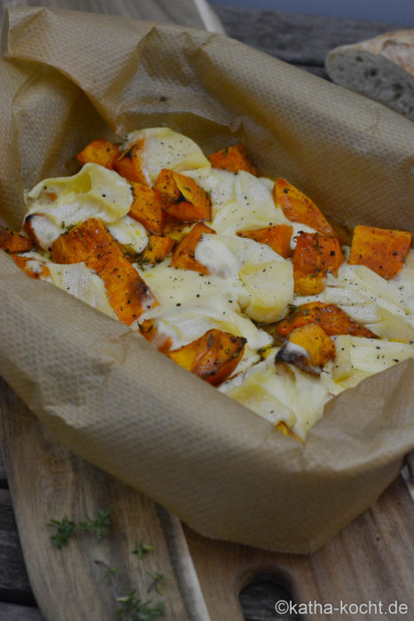 Gebackener Kurbis Mit Camembert Und Thymian Katha Kocht Pistole Depoca A Tamburo