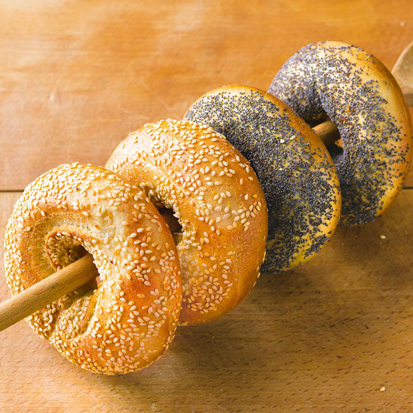 In deutschland findet man bagel inzwischen oft bei den amerika wochen der discounter kann sie online bestellen zum beispiel bei den bagelbrothers oder backt selbst nach unserem original usa grundrezept fuer bagel unten. Mit ein klein bisschen mehl bestaeuben. Vor dem backen wird der rohe bagel mit heissem wasser ueberbrueht und bekommt so eine glatte glaenzende oberflaeche.