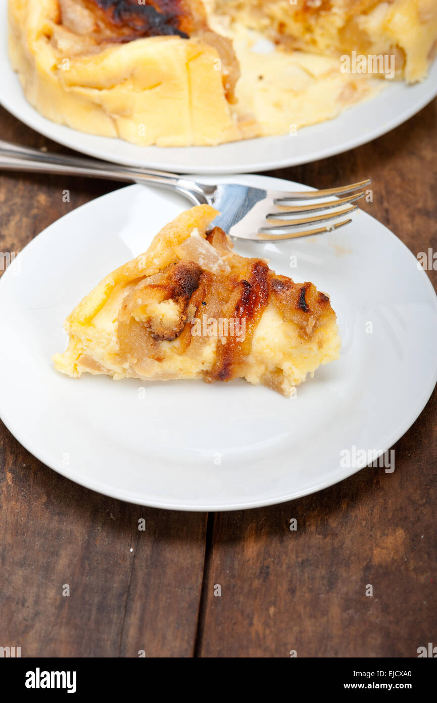Birnenkuchen mit rahmguss und frischen oder eingemachten birnen.