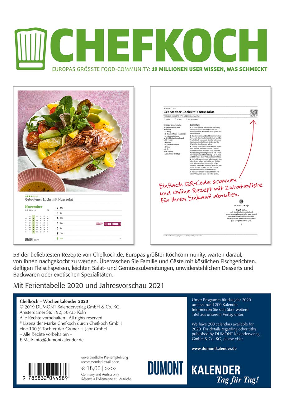 Chefkoch Wochenkalender 2020 Kuchen Kalender Mit 53 Rezepten Format 21 0 X 29 7 Cm Spiralbindung Amazon De Dumont Kalenderverlag Gruner Und Jahr Bucher Rezept Spargel Filoteig