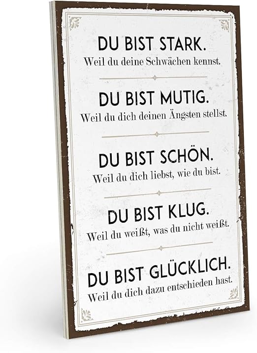 Artfaves Holzschild Mit Spruch Du Bist Stark Mutig Schon Klug Glucklich Vintage Shabby Deko Wandbild Turschild Amazon De Kuche Haushalt Rezept Fuer Crepes Teig Suess